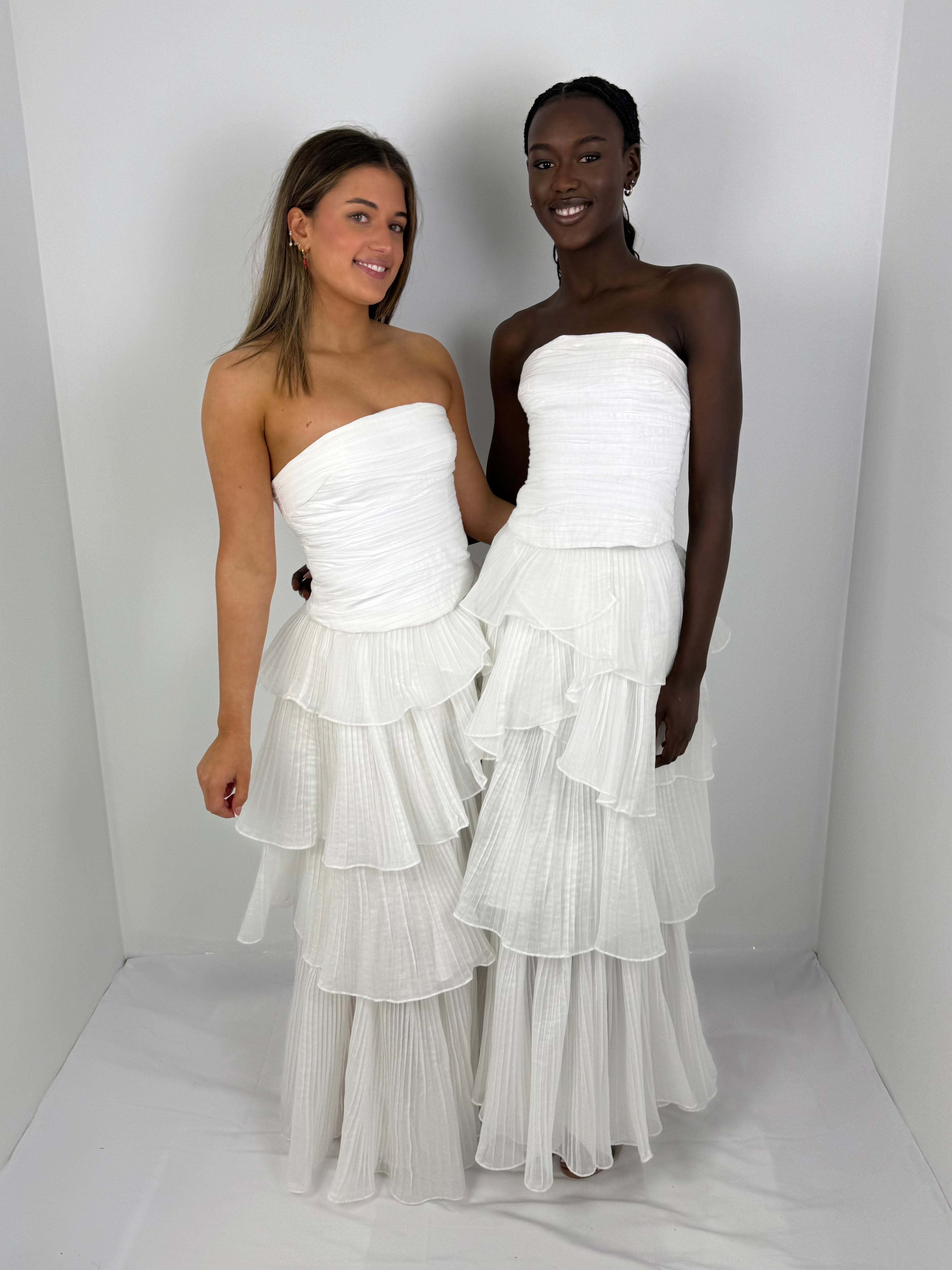 DOUBLE TIME PLEAT STRAPLESS DRESS
