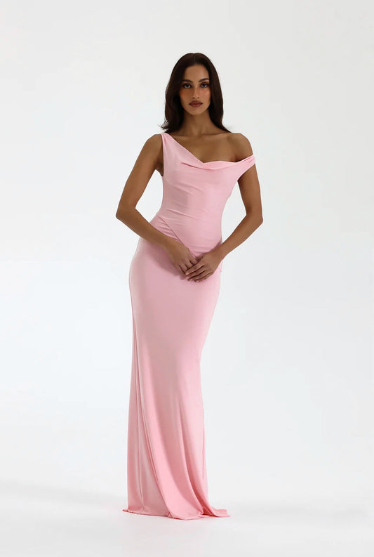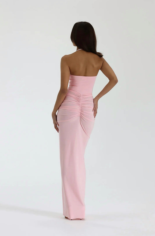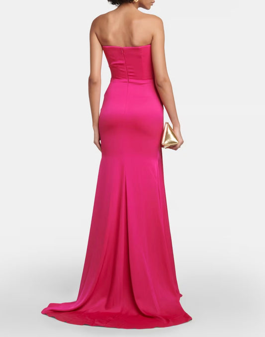 STRAPLESS DRAPED CRÊPE SATIN GOWN