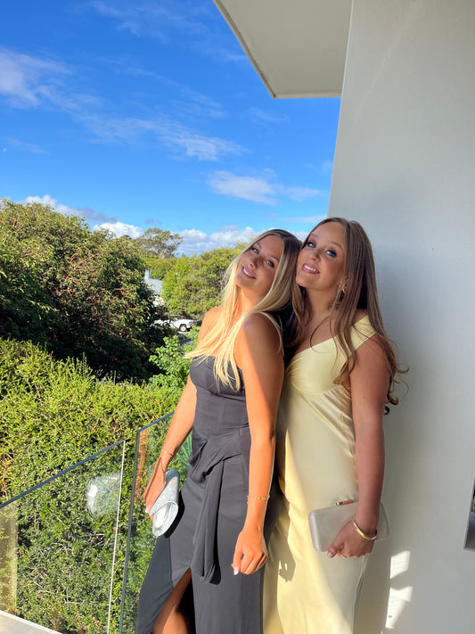 GREY CASSIDY STRAPLESS COLUMN GOWN
