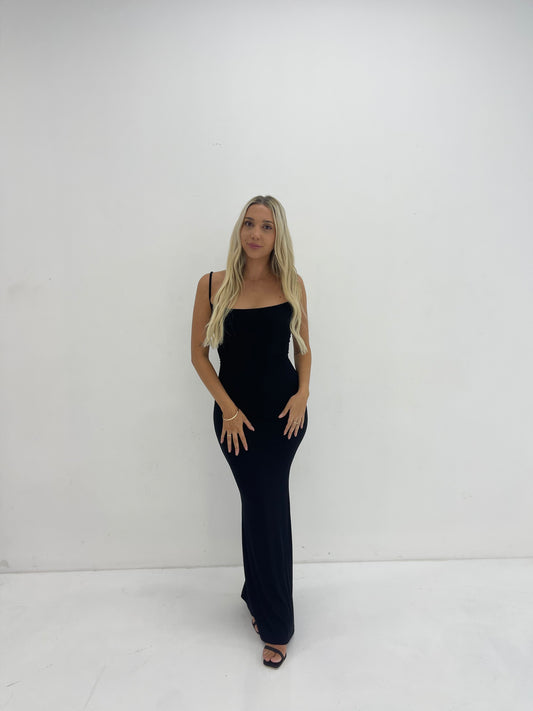 BLACK LOUNGE SLIP DRESS