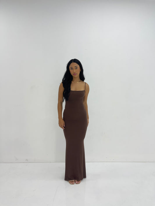 BROWN LOUNGE SLIP DRESS