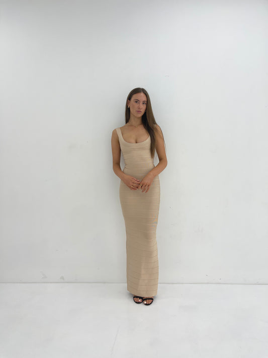 BEIGE ROUND NECK GOWN