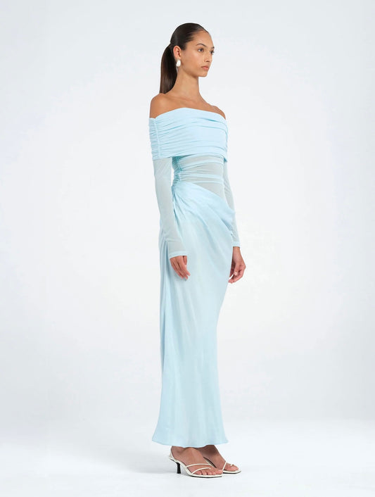 BABY BLUE YASMIN OFF SHOULDER MAXI