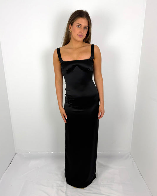 BLACK HIGH VOLTAGE SLIP DRESS
